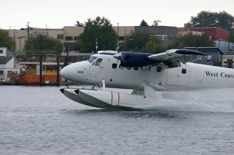 The ferries share the harbour with seaplanes. This is a busy airport. Small single-engine float planes take tourists on trips round Vancouver Island, and bigger planes are bringing people in from Vancouver or further afield.